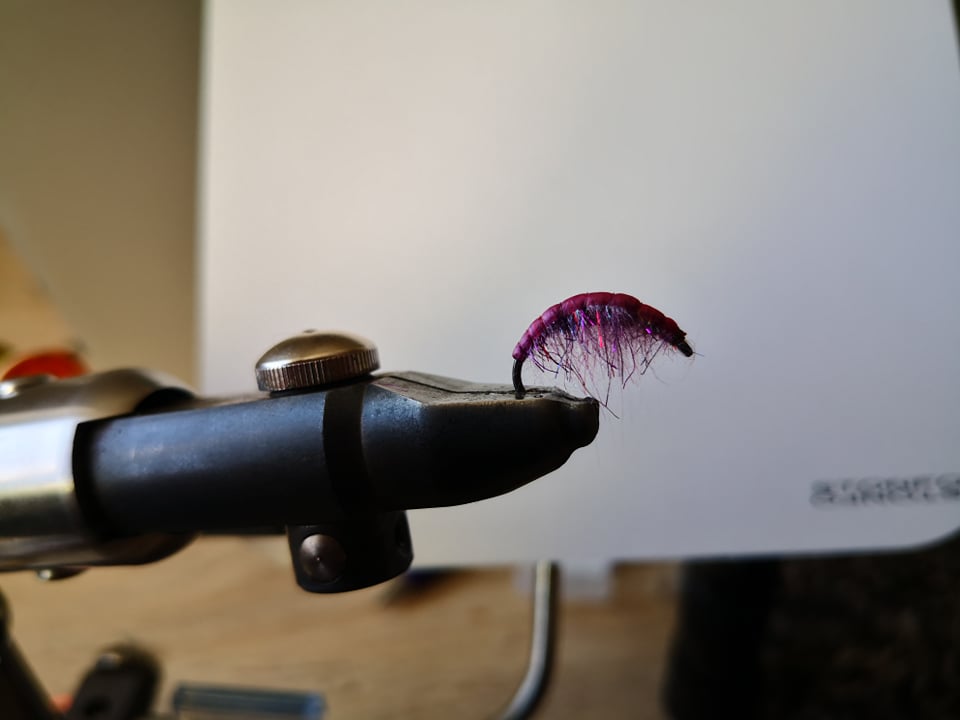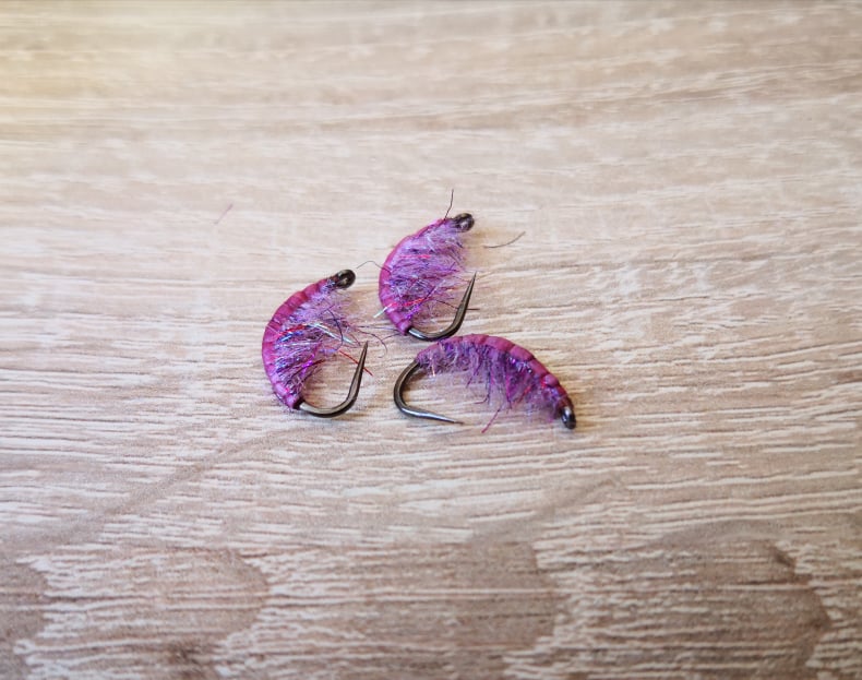 Fialového blešivce používám velmi rád, jedná se o mušku, kterou preferují pstruzi, lipani a nepohrdne jím ani bílá ryba. S touto muškou chytám prakticky celoročně a s velikostí není nutné si lámat hlavu. Používám jej od velikosti 6 po velikost 14. Menší blešivce nemá ani smysl vázat.