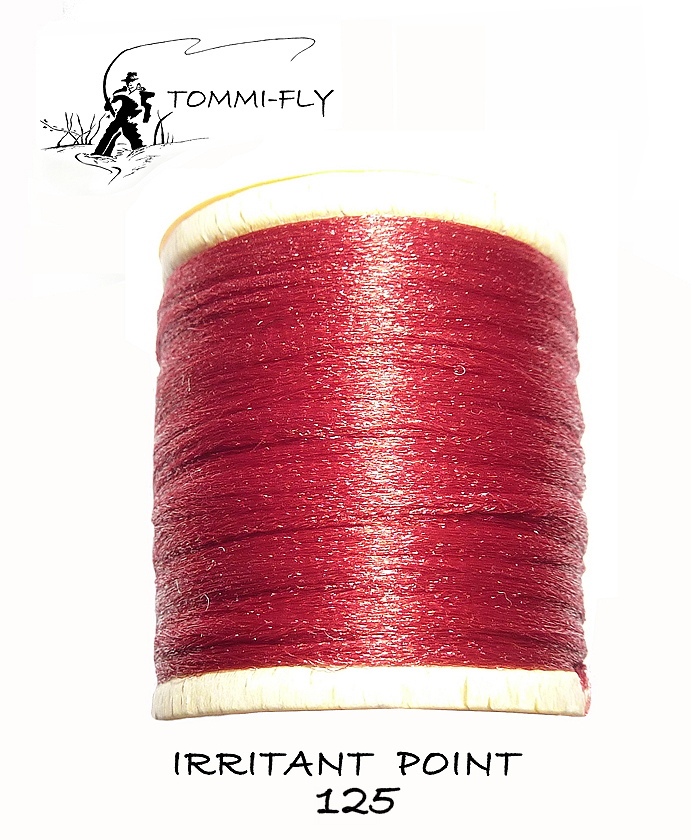 Nepostradatelný materiál pro tvorbu much. Pomocí Irritant Point vytváříme dráždivé body přitahující ryby - vhodný na "TIPY" umělých mušek. Dá se používat jak na suché mušky (red tag), tak i na nymfy, mokré mušky či lury. Barevnost je vyvinuta tak, aby byla skutečně dráždivá. Nenechte se mýlit vzhledem některých barev, vypadají mdle, nezajímavě, ale řada barev je UV reflexních, takže pod UV světlem a slunečními paprsky přímo září. UV reflexe je uvedena u příslušné barvy. Vyráběn ve dvou jemnostech: Irritant point a Irritant point stronger.