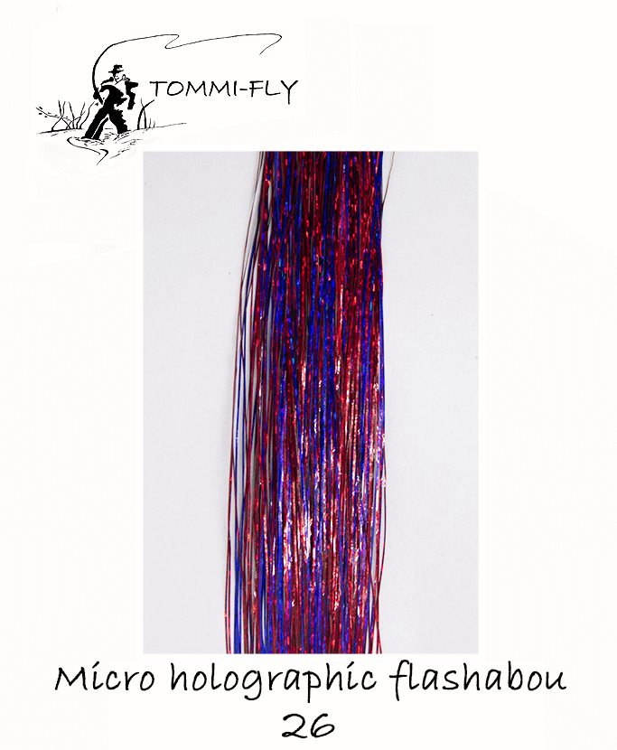 Micro holographic flashabou je muškařský vázací materiál vhodný zejména pro vázání streamerů a jezerních lur. Přidává se do hřbetů pro zvýraznění streamera. Je připraven ve 32 barevných variantách a 2 velikostech.