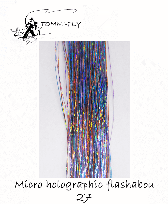 Micro holographic flashabou je muškařský vázací materiál vhodný zejména pro vázání streamerů a jezerních lur. Přidává se do hřbetů pro zvýraznění streamera. Je připraven ve 32 barevných variantách a 2 velikostech.