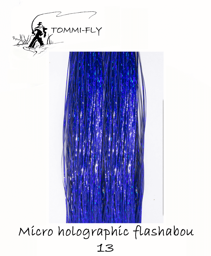 Micro holographic flashabou je muškařský vázací materiál vhodný zejména pro vázání streamerů a jezerních lur. Přidává se do hřbetů pro zvýraznění streamera. Je připraven ve 32 barevných variantách a 2 velikostech.