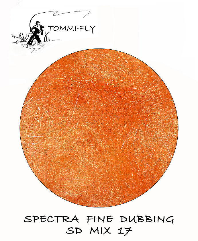 Spectra fine dubbing je mix jemného syntetického vlákna, přírodní srsti zajíce nebo králíka a spektrálního vlákna pro dubbování.. Kombinace materiálů umožňuje přirozenou stavbu tělíčka mušky s odstávajícími vlákny a dráždivým spectra materiálem. Vše je ve variabilní délce vhodné pro dubbování a barevně laděno do výsledné barvy.