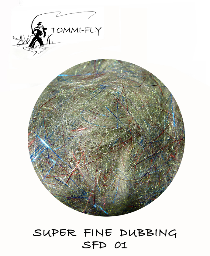 Super fine dubbing je velmi univerzální jemný dubbing mix. Lze jej použít na všechny druhy mušek - ať už suchá, mokrá nebo nymfa, dokonce lze dubbing vyčesat a vytvořit malého streamera. Délka vláken je od 3 mm do 10 mm. Jedná se o plnou syntetiku, složenou z několika typů syntetických polymerů. Typickou vlastností je vysoký lesk, poloprůsvitnost a lesk.