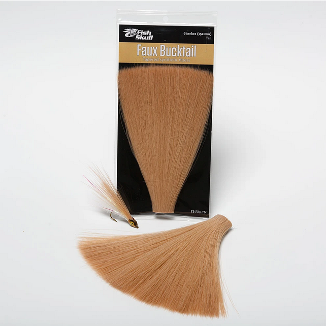 Fish-Skull Faux Bucktail, je zúžený syntetický víceúčelové vázací vlákno pro mušky navržené tak, aby napodobovalo typické přírodní bucktaily prémiové délky. Vlákna Fish-Skull Faux Bucktail mají stejný základní průměr, jemné zvlnění a zužování jako přírodní bucktail. Vzhledově vypadá téměř identicky. Vlákna však nejsou dutá (což pomáhá vaší mouše rychleji se potopit). Vlákna lze použít v široké škále typů mušek nebo nástrah. Faux Bucktail se snadno stříhá, ale stejně jako většina ostatních syntetických materiálů může být pro vaše pěkné nůžky tvrdý. Používejte vroubkované nůžky pro vysoké zatížení určené na syntetiku.