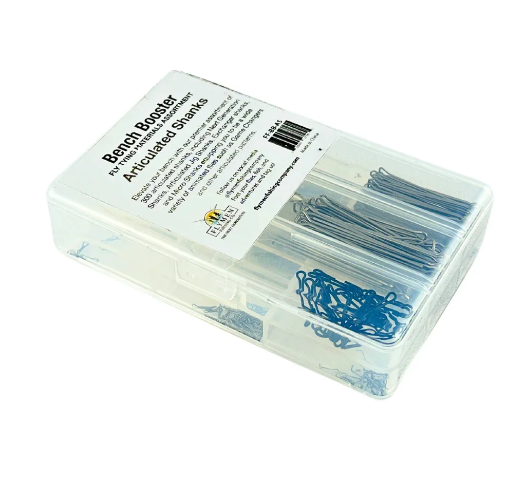 Bench Booster – Articulated Shank Assortment je výběrová sada 12 typů kloubových tělíček (shanks) od špičkové značky Flymen Fishing Company, ideální pro tvorbu moderních, artikulovaných mušek. V balení najdete: