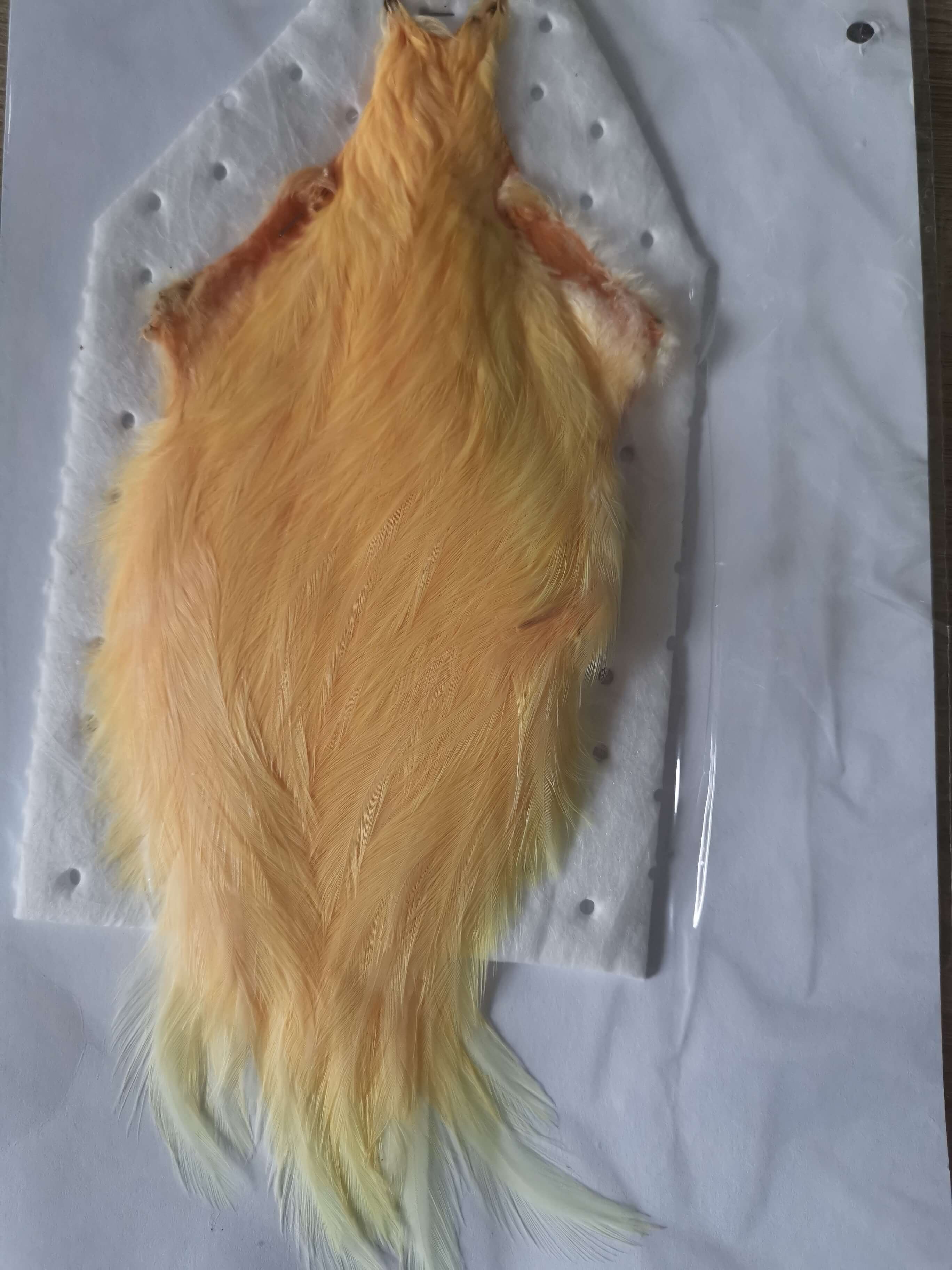 Skalp kohouta je základním materiálem pro vázání umělých mušek, který nabízí kvalitu a univerzálnost. Peří z kohoutího skalpu je známé svou pevností, jemností a konzistentní délkou, což jej činí ideálním pro výrobu suchých mušek, nymf i streamerů. Skalp obsahuje širokou škálu per různých velikostí, což umožňuje vázání mušek různých druhů a velikostí, od drobných jemných vzorů až po větší mušky.