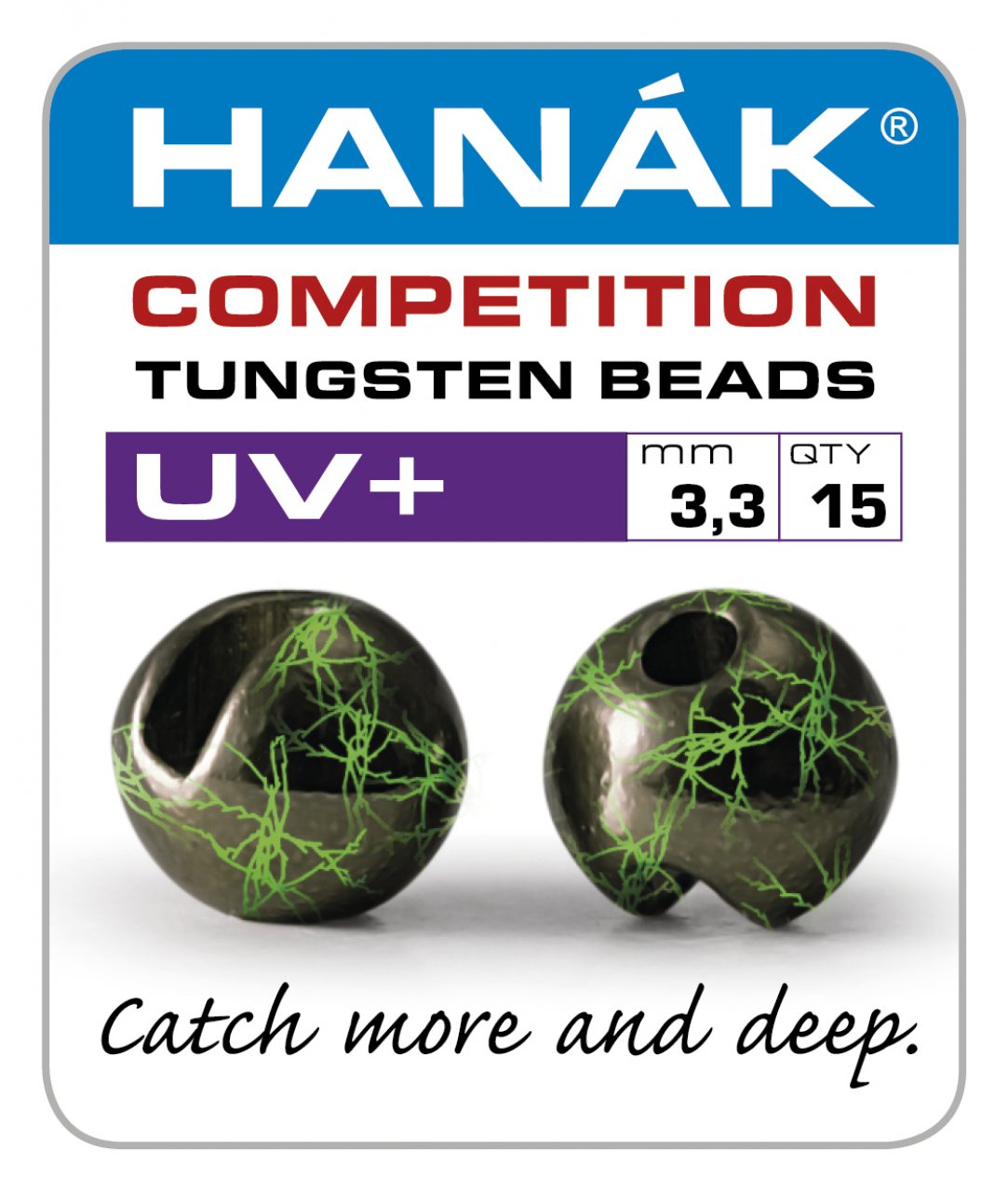 Tungstenové hlavičky UV+ černá & chartreuse přináší kombinaci černé barvy a fluo chartreuse žilkování, které pod UV světlem jemně probleskuje. Tento efekt zvyšuje viditelnost nástrahy ve sloupci i u dna a pomáhá vyprovokovat ryby k záběru i při horších světelných podmínkách nebo v zakalené vodě. Široká škála průměrů umožňuje přizpůsobit hlavičku konkrétní situaci – od jemného chytání až po hlubší nebo proudné úseky.