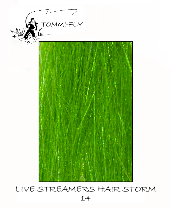 Představujeme Live Hair Storm – inovativní streamerový vázací materiál, který kombinuje jemnost, živý pohyb a nyní i jemný zelený lesk pro ještě větší atraktivitu pod vodou. Tento materiál navazuje na úspěch klasického Live Hair a posouvá ho o krok dál – právě ten drobný zelený třpyt vytváří iluzi života, která dokáže spustit útok i u těch nejopatrnějších dravců.