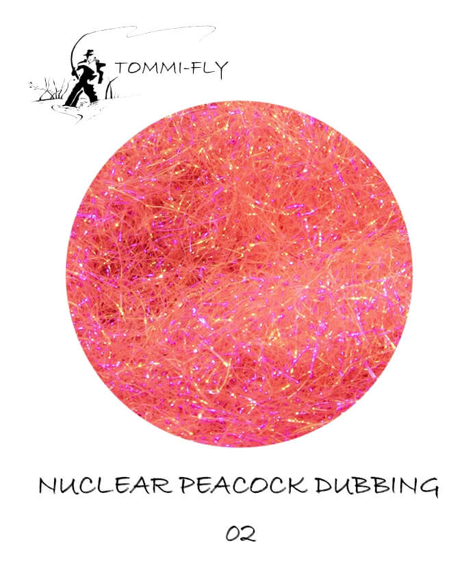 Nuclear Peacock dubbing je plně syntetický dubbing, který je jemný a zároveň vysoce lesklý. Střídá se v něm modrý, zelený a bronzový lesk. Je obarven do 10 základních barev, které jsou vhodné především do záhlaví a límečků Vašich mušek. Vaše mušky krásně zviditelní a mimo to dodají UV odraz. U světlých barev je odraz velmi silný u tmavších slábne a spíše mění odstín.