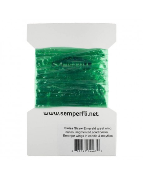 Swiss Straw (švýcarská tráva) je materiál, který využijete při vázání umělých mušek jako imitaci křídel a hřbítků. Po namočení do vody materiál zesklovatí a změkne. Získá tak přirozený vzhled křidélek suchých, mokrých mušek a zárodků křídel.