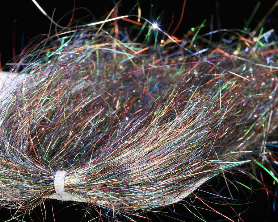 Mix velmi jemných vlasů s perleťovým, UV, holografickým nebo kovovým leskem. Univerzální použití, zejména do křídel streamerů, mokrých mušek. Maximální délka vlasu 200 mm.