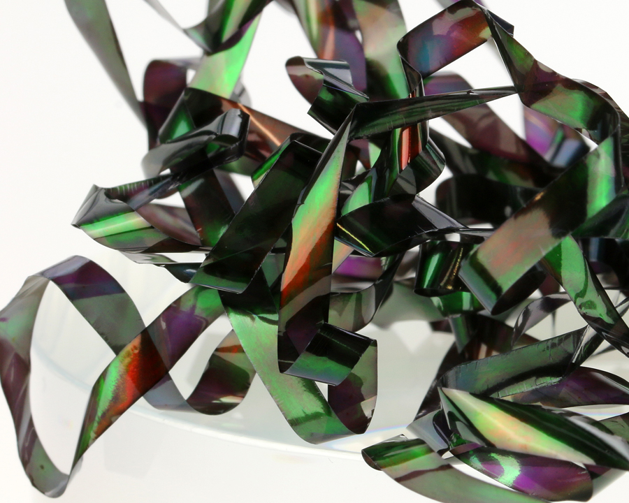 Pevná a trvanlivá perleťová folie s opalizujícím efektem, nařezaná na 3 mm široké proužky. Používá se například na tělíčka "salmon" a "saltwater" vzorů, streamerů. Skvělá je i na hřbítky nymf a blešivců.