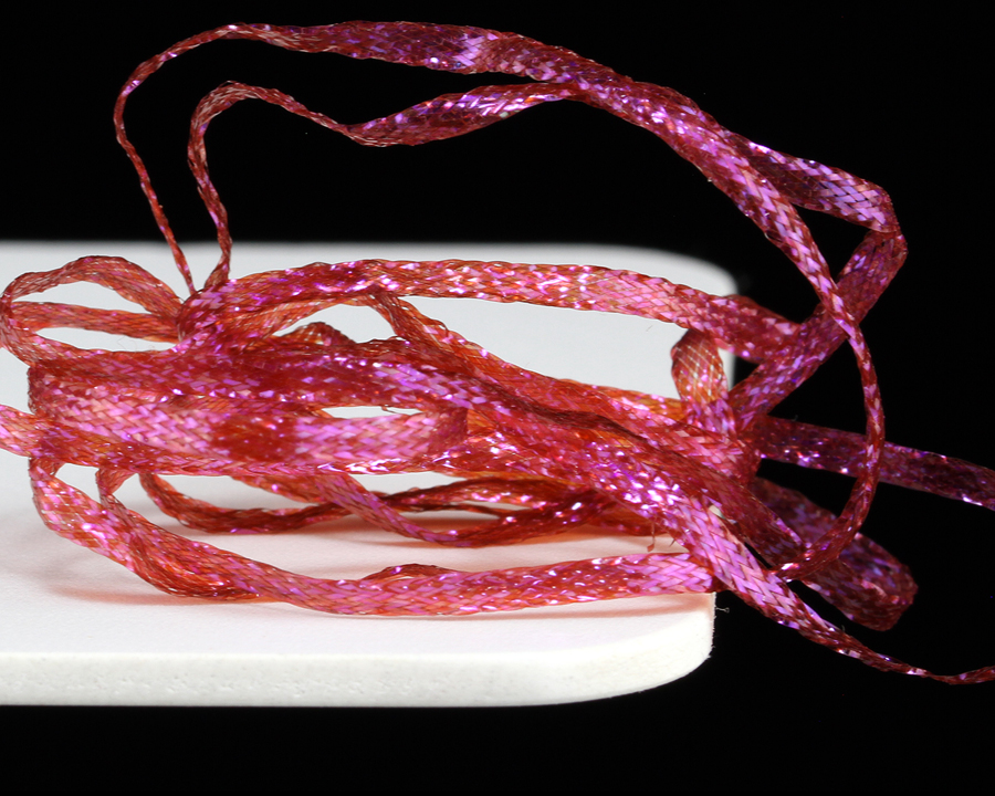 Pletená stuha s iridiscentním leskem. Vynikající pro tvorbu hřbítek českých nymf, blešivců, kroužkování streamerů a podobných vzorů.
