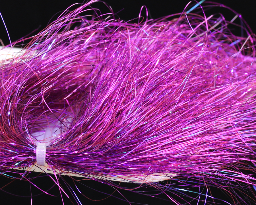 Mix jemných vláken s perleťovým, UV, holografickým nebo kovovým leskem. Oproti standardním "Angel Hair" nebo "Angel Blend Hair" jsou vlákna širší, takže lesk je mnohem silnější. Univerzální použití, zejména do křídel streamerů, mokrých mušek ..