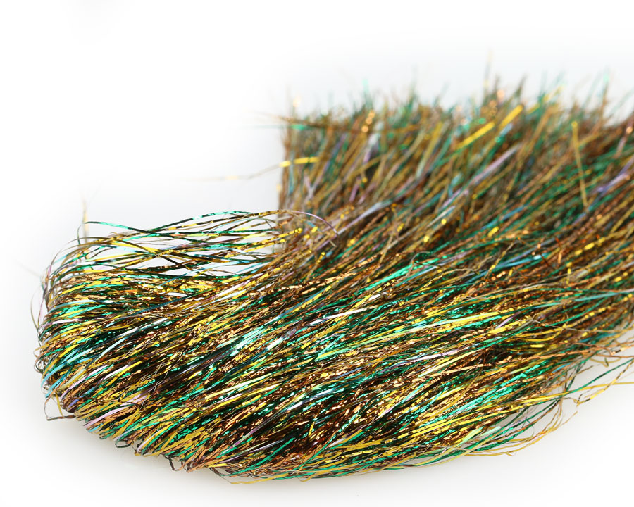 Směs plochých a splétaných vláken s iridiscentním, kovovým, případně holografickým efektem.