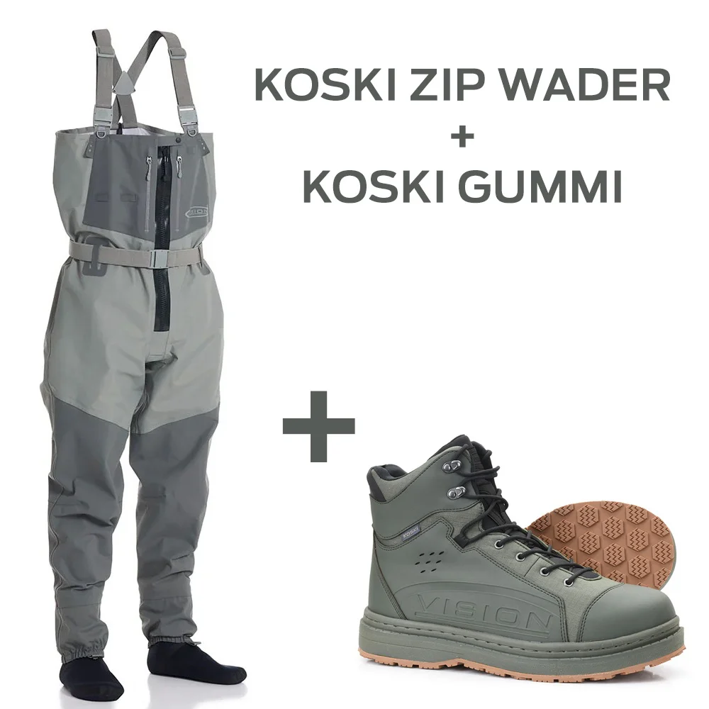Vision Brodící kalhoty Koski ZIP STKFT, grey - vel. M + Vision Brodící boty KOSKI, gumová podrážka - vel. US 12 - EU 45